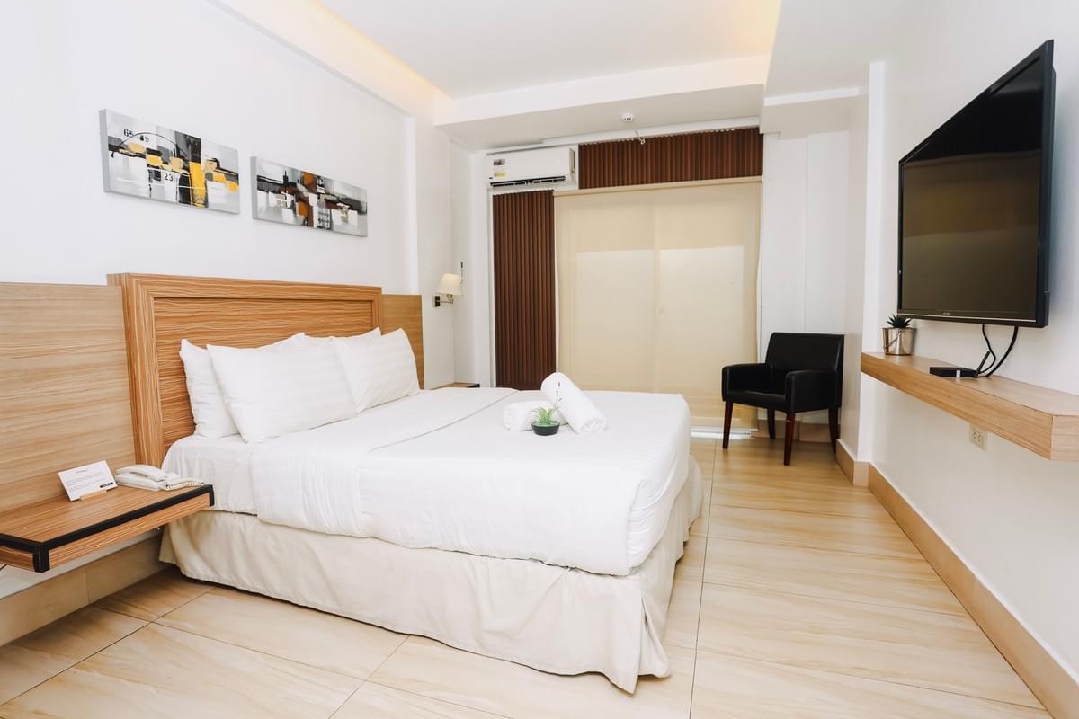 Located at the 4th Floor, our Deluxe Room features a cozy Queen-sized bed, warm decor, and modern amenities-- ideal for a comfortable and relaxing stay.